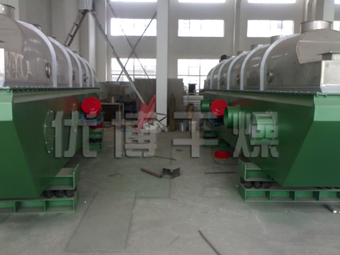 香料干燥機(jī)是由物料自進(jìn)料進(jìn)口進(jìn)入機(jī)內(nèi),在振動(dòng)力作用下,物料沿水平面流化床拋擲,向前連續(xù)運(yùn)動(dòng),熱風(fēng)向上穿過(guò)流化床同濕物料換熱后,濕空氣經(jīng)旋風(fēng)分離器除塵后由排風(fēng)1:3排出.干...